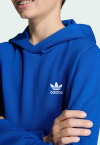 Børn kan hygge sig i klassisk stil, når de bærer denne adidas-hættetrøje. Genanvendt fleece vil omgive dem med varme, mens de ribbede manchetter og kanten holder varmen inde. Et broderet Trefoil-logo på brystet forbinder dem med en arv af spilskiftere, der turde at gå deres egne veje. Bomulden i dette produkt kommer fra Better Cotton. Better Cotton sourcet via en sporbarhedsmodel kaldet massebalance. Dette betyder, at Better Cotton ikke fysisk kan spores til slutprodukter. Læs mere her: https://bettercotton.org/who-we-are/our-logo/
