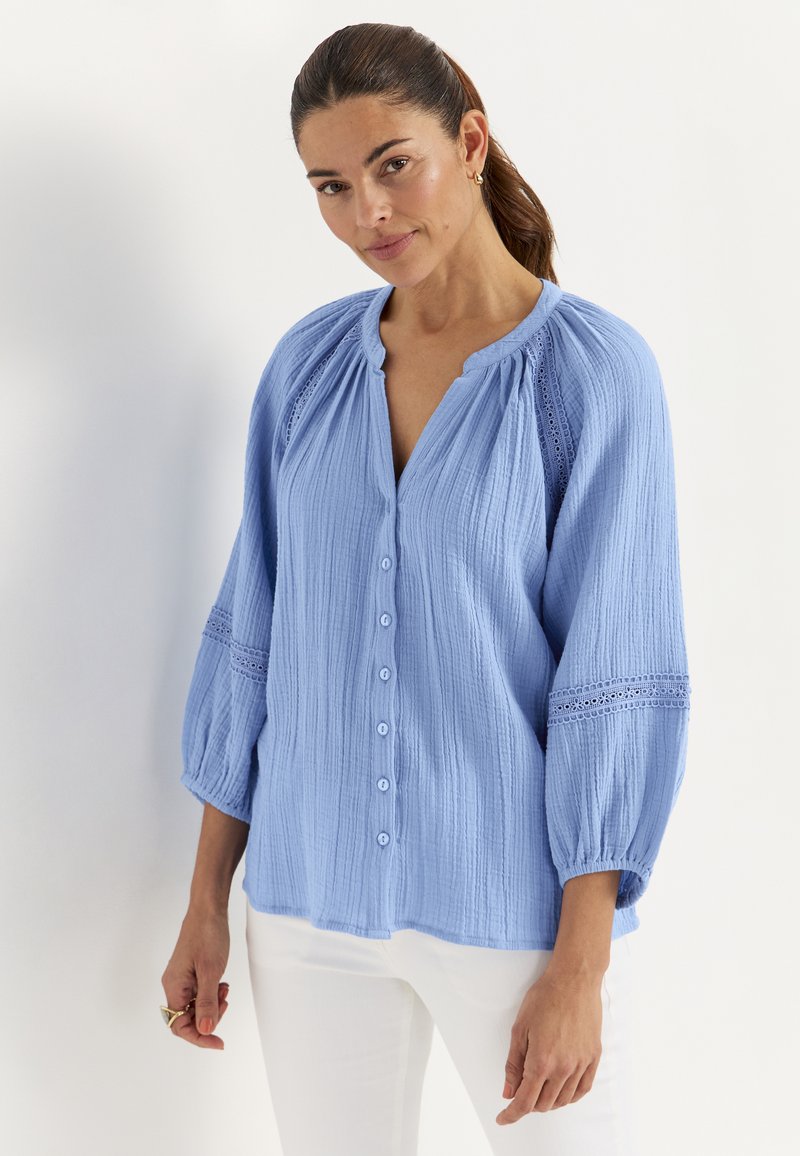 Nyhedheart_outlinedStreet OneKURZARM BLUSE MIT RÜSCHENDETAILS - Skjortebluser - soft mid blue washed549,95 kr