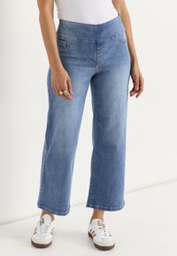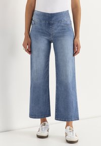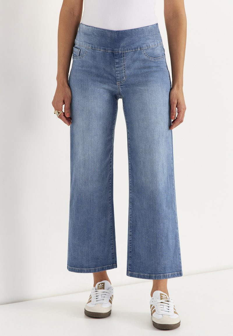 WIDE ANKLE-LENGTH JEANS WITH HIGH RISE - Flared jeans - light blue denim