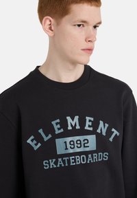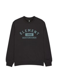 Sort sweatshirt med rund halsudskæring, med lyseblå "ELEMENT 1992 SKATEBOARDS"-tekst på brystet. Blødt stof, afslappet pasform.