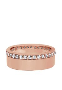 Denne funklende ringbånd i fineste rosaforgyldt 925 sterling sølv med strålende Swarovski® krystaller smyger sig harmonisk omkring fingeren og pynter enhver håndbevægelse som et tidløst smykke-highlight. Det moderne design og de elegante former gør denne fingerprydelse til et stilfuldt blikfang og en trofast følgesvend i hverdagen.