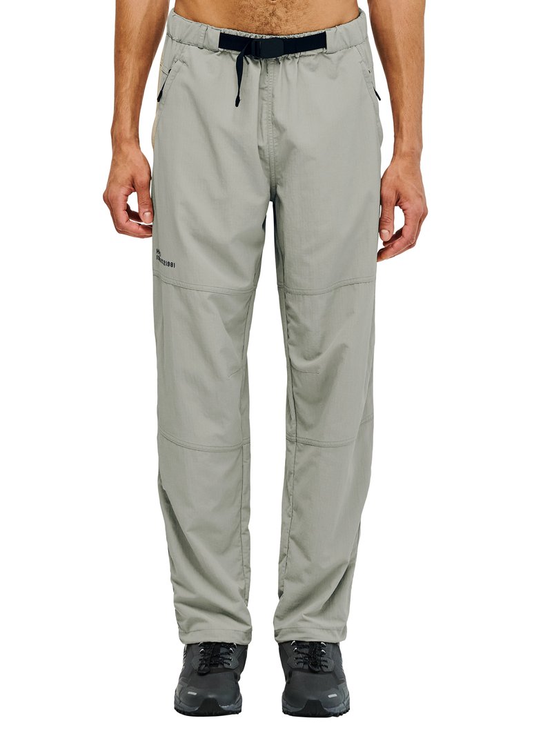 Mand iført lysegrå udendørsbukser med justerbart sort bælte og sorte vandresko, stående med armene afslappet ned langs siderne.