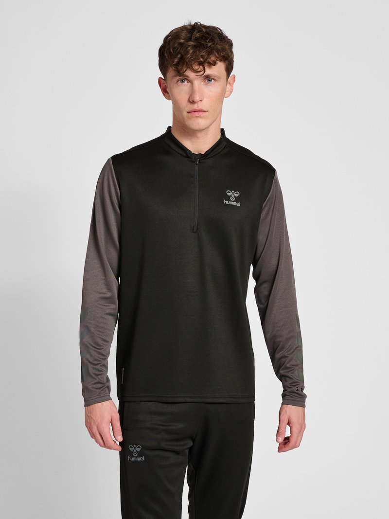 HMLONGRID 1/2 ZIP POLY - Langærmet T-shirt - jet black forged iron