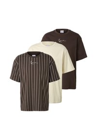 SMALL SIGNATURE ESSENTIAL AND PINSTRIPE TEE 3 PACK - T-shirts print - dark brown/dark brown/off white