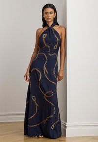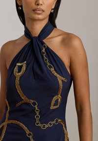 BELTING-MOTIF SEQUINED CREPE HALTER GOWN - Gallakjole - navy multi