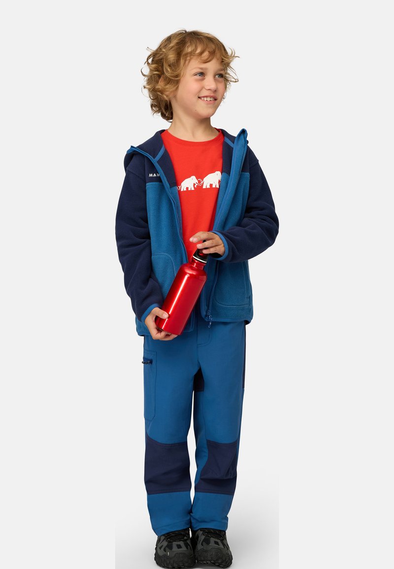 Et mellemlag, der holder børn varme, når de udforsker stier, rister skumfiduser, løber op til bakketoppen og meget mere. Fremstillet af 100% genbrugt polyester leverer denne jakke komfort og varme hele dagen til unge eventyrere. Hvad enten de klatrer over klipper eller op i træer, tilbyder det slidstærke bløde fleecestof beskyttelse mod skrammer. To lynlåslommer i siden holder det vigtigste på plads. Med et Mammut-logomærke er den lune Waymarker ML Hooded Jacket til børn, der finder magi og eventyr hver gang de træder udenfor.