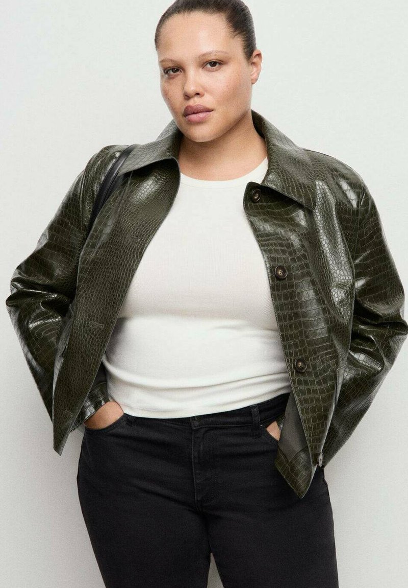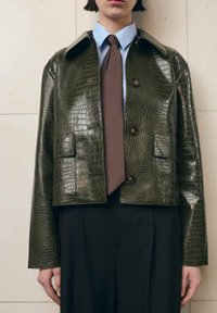 Imiteret læderjakke - kaki