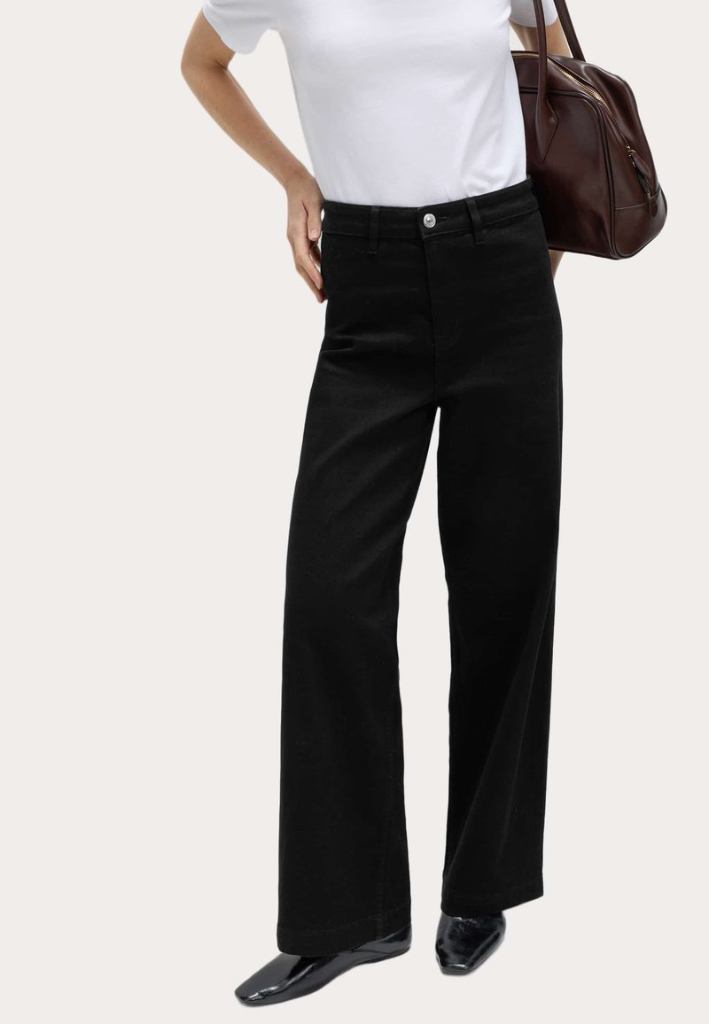 SEAMLESS WIDE LEG - Flared jeans - black
