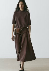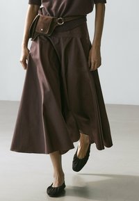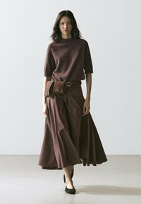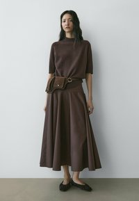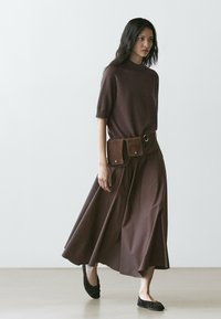 MIDI WITH SASH BELT AND SEAM DETAILS - A-snit nederdel - dark brown