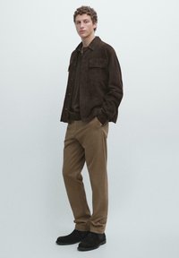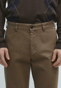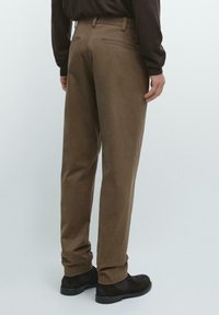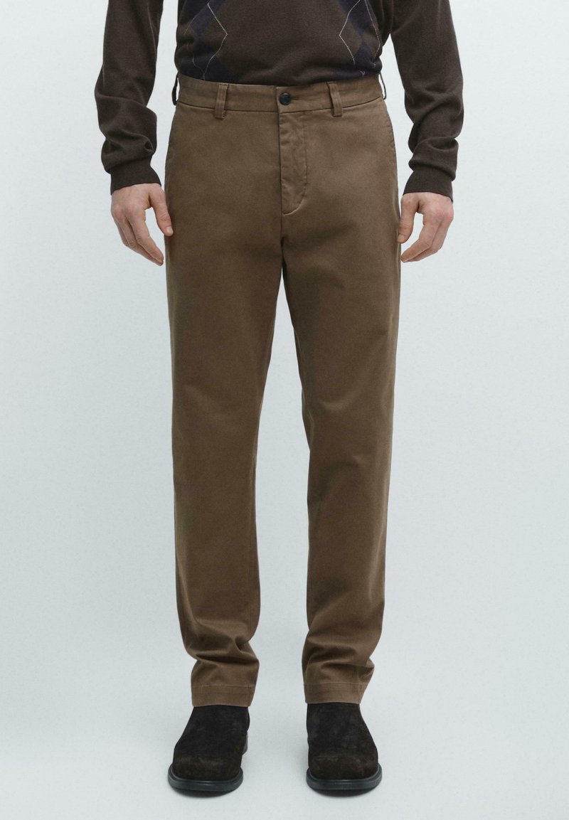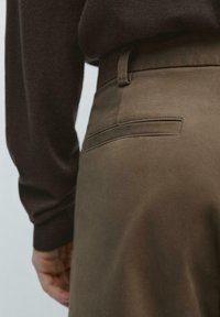Two welt pockets on the back. To sidelommer. Tapered fit bukser: dette snit har en afslappet pasform i taljen, som gradvist bliver smallere ned mod anklerne. Fremstillet af stof i bomuldsblanding. Detail of fabric with microstructure. Concealed zip fastening with flap, button and inside button.
