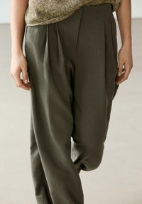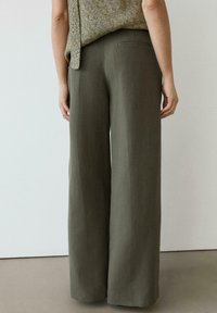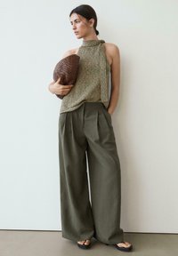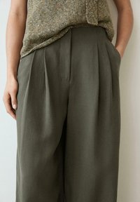DARTED WIDE-LEG TROUSERS - Bukser - khaki
