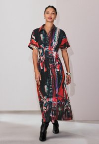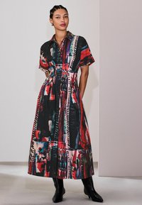 REGULAR FIT - SHORT SLEEVE CINCHED WAIST MIDI - Skjortekjole - red abstract print