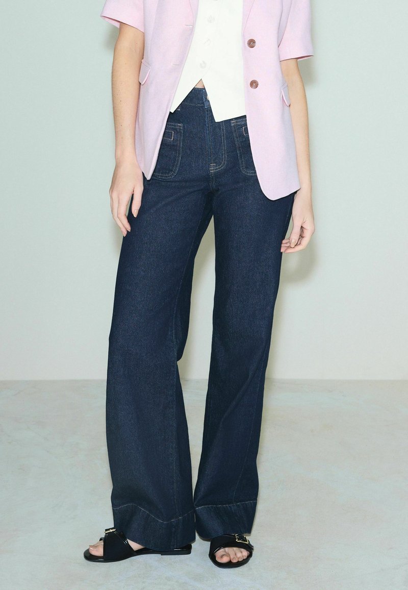 REGULAR FIT - PATCH POCKET WIDE LEG JEANS . - Wide leg - rinse denim
