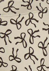 Leggings i creme med ribbet tekstur, prydet med et gentaget sort saks mønster. Elastisk talje, tætsiddende design, ankellang stil.