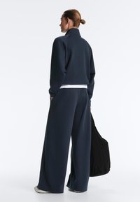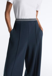 STRAIGHT-LEG PIQUÉ WITH CONTRAST PIPING - Bukser - metallic blue