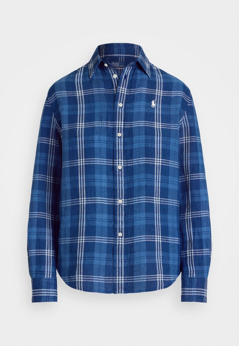 CLASSIC FIT PLAID LINEN SHIRT - Skjortebluser - indigo/white