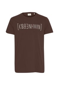 ![Brun T-shirt med rund hals og hvidt, stiliseret tekst "[KØBENHAVN]" trykt på tværs af brystet.](https://img01.ztat.net/article/spp-media-p1/8d7fc891eeb34ea484471f8c2ec5f1c3/362843e2899a4761a914171a4037394f.jpg?imwidth=762&filter=packshot)