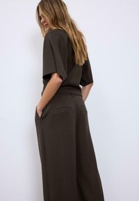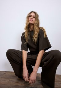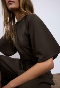 Nyhedheart_outlinedStradivariusSHORT SLEEVE BOAT NECK T-SHIRT WITH GATHERS 07055550 - T-shirts basic - dark brown99,00 kr