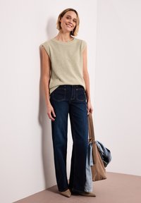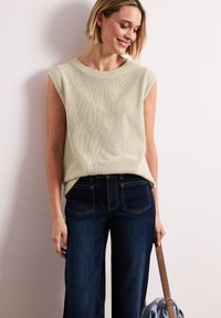 DROPPED SHOULDER TOP IM STRICK-LOOK - T-shirts basic - smoke beige