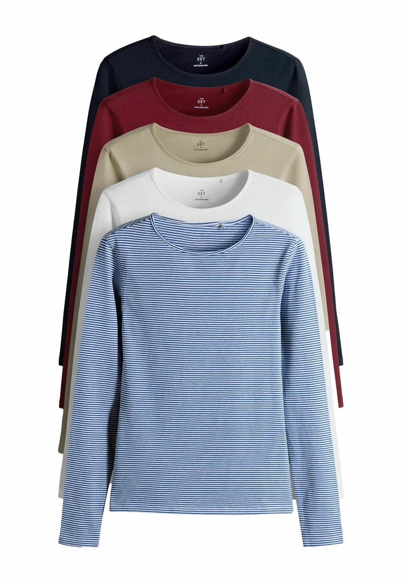 REGULAR FIT - 5 PACK LONG SLEEVE CREW NECK - Langærmet T-shirt - navy light blue stripe red stone brown white